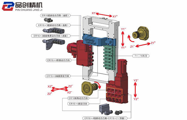 | 主軸側(cè)面動力刀具 | 4×?ER16 +2×?ER16(選配) |